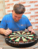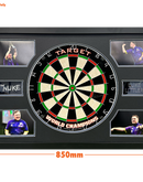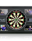 A signed Target dartboard in a Premium Frame. This product was signed at a private signing with Luke Littler on the 23.07.24.