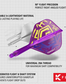 More than just a flight, K-Flex is a revolution in dart design. The integrated flight and shaft system is crafted using advanced precision moulding technology, ensuring a seamless, ultra-durable construction. Engineered to maintain a perfect 90-degree angle, these flights enhance stability and accuracy, reducing deflections and delivering a consistently smooth throw. With K-Flex, you’ll experience a level of performance trusted by champions. The innovative one-piece system eliminates flight dropouts, keeping your setup secure and allowing you to focus on your game without interruptions.
